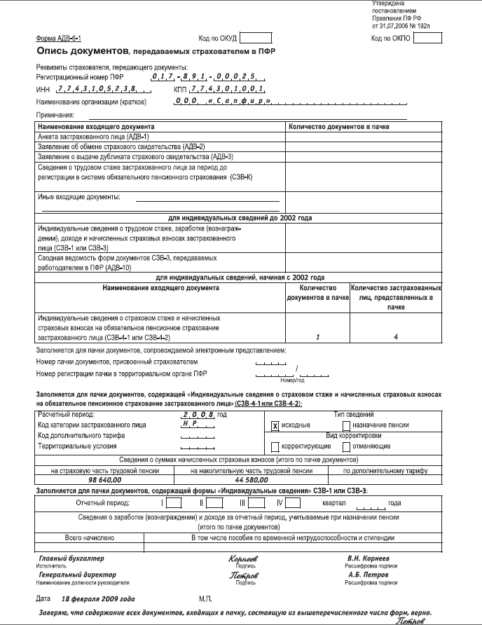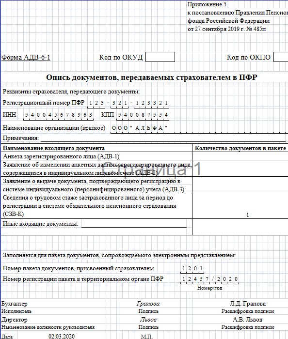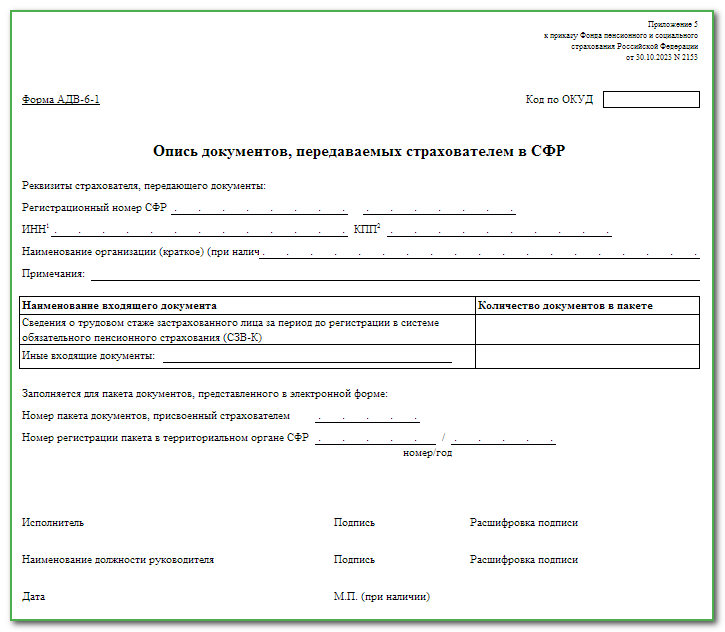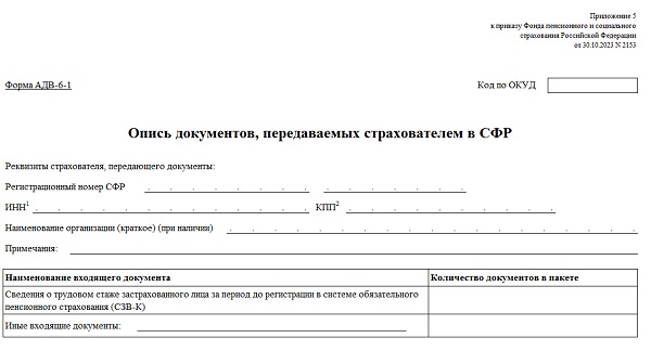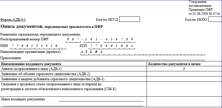 Форма адв 6