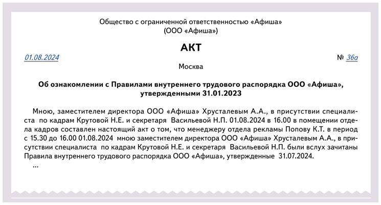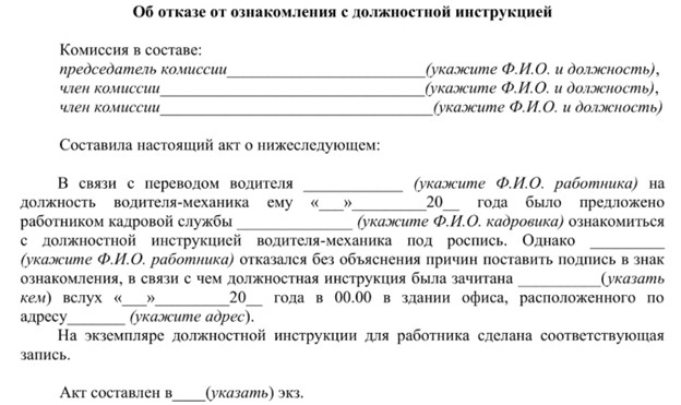 Форма акта ознакомления