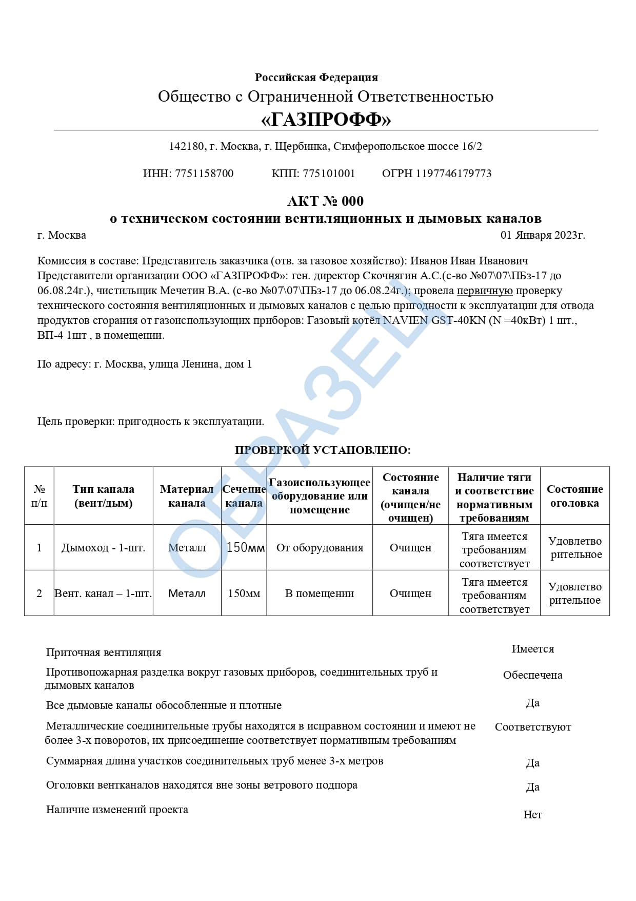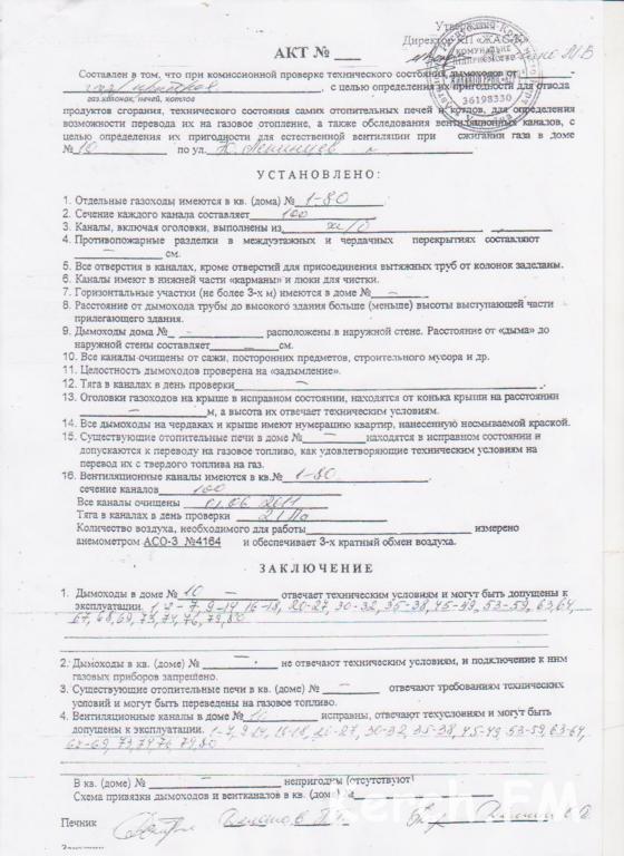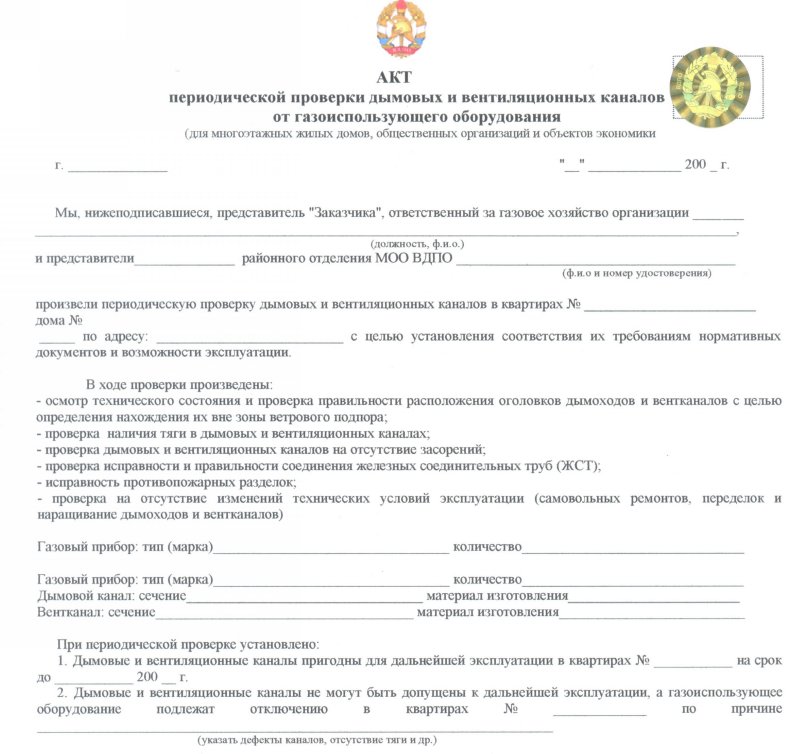 Форма акта проверок дымоходов