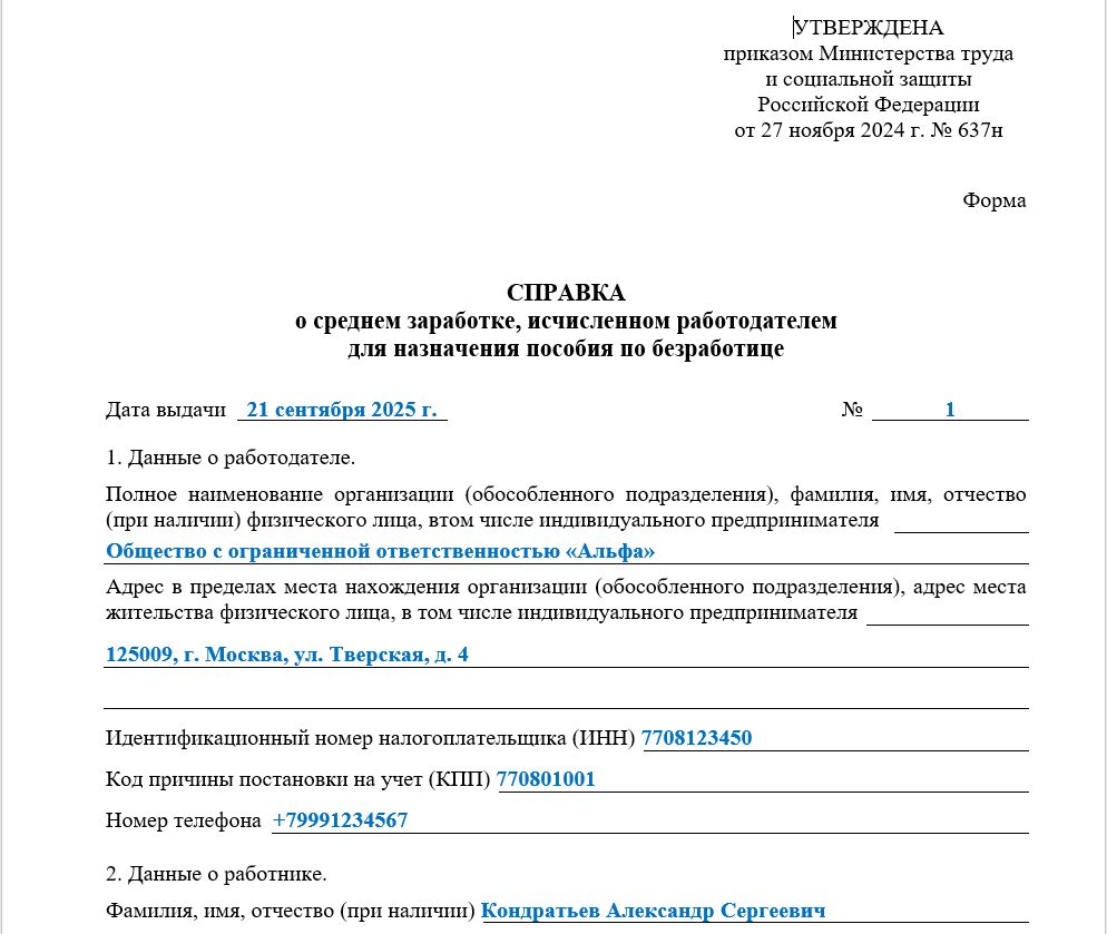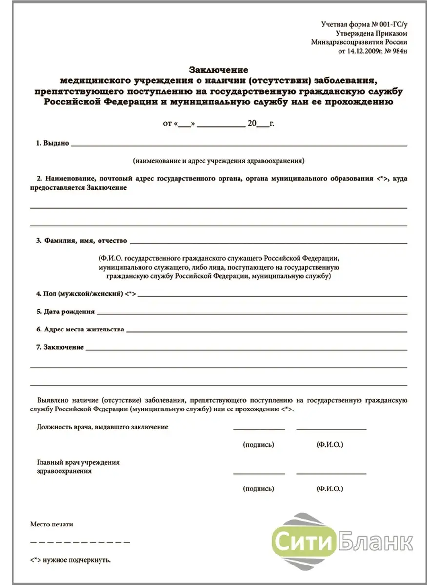 Форма бланка предусматривает