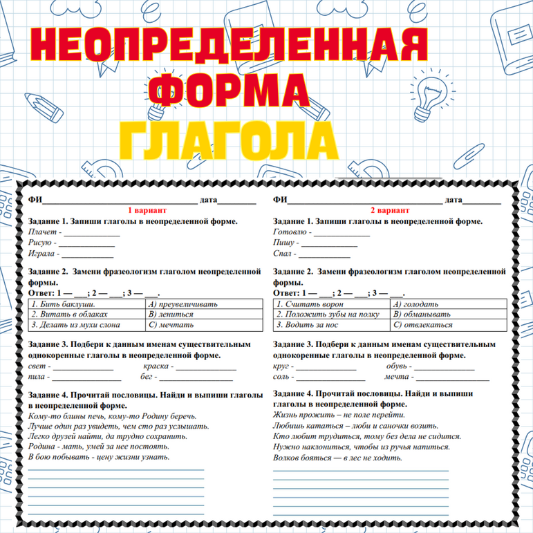 Форма глагола 4 класс русский