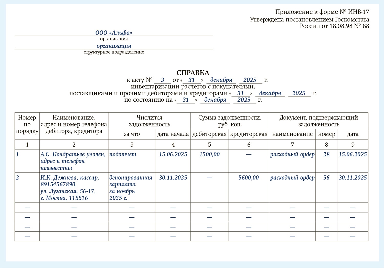 Форма инв 11