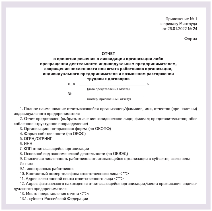 Форма кадровых отчетов