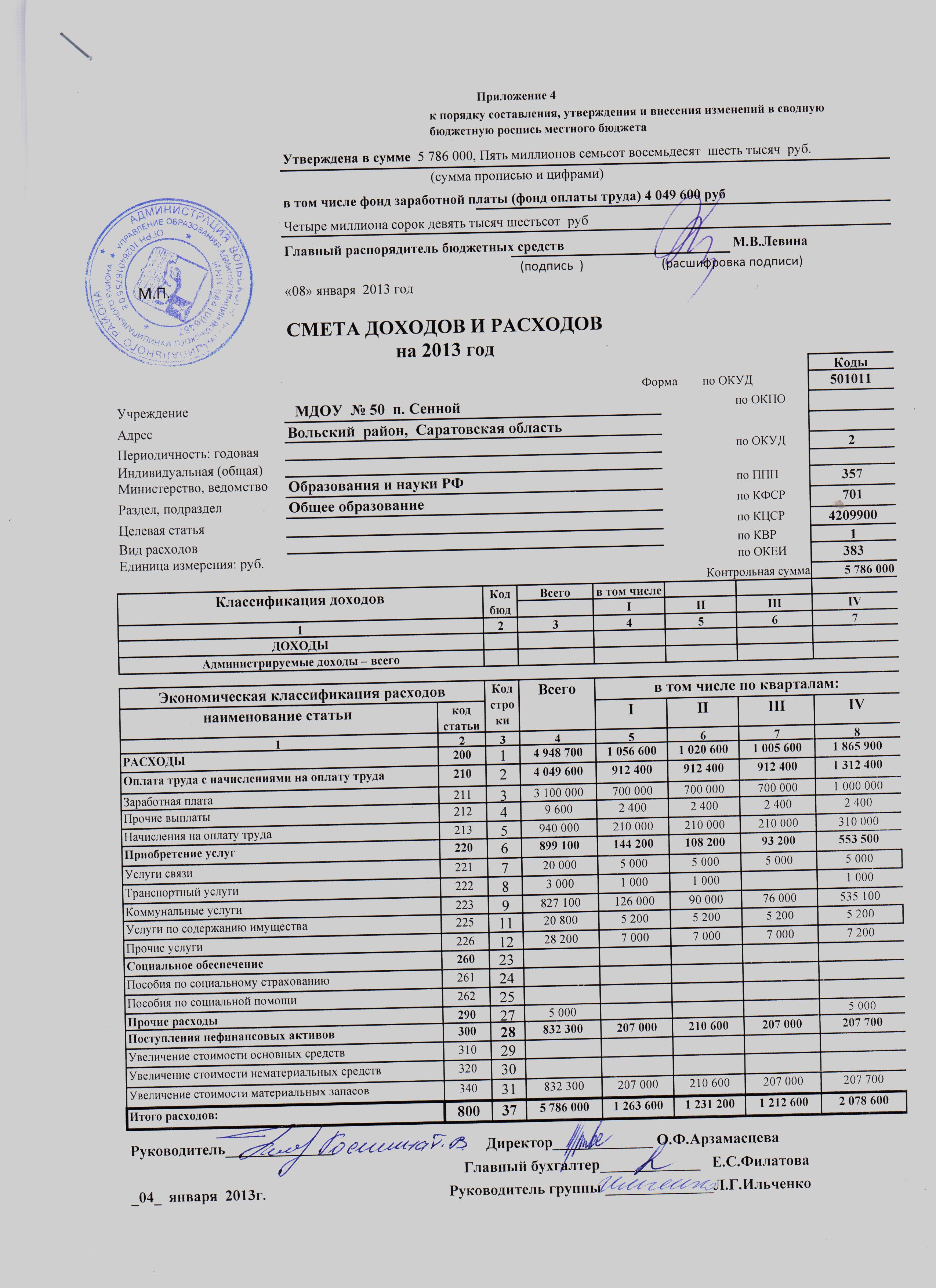 Форма кассового плана