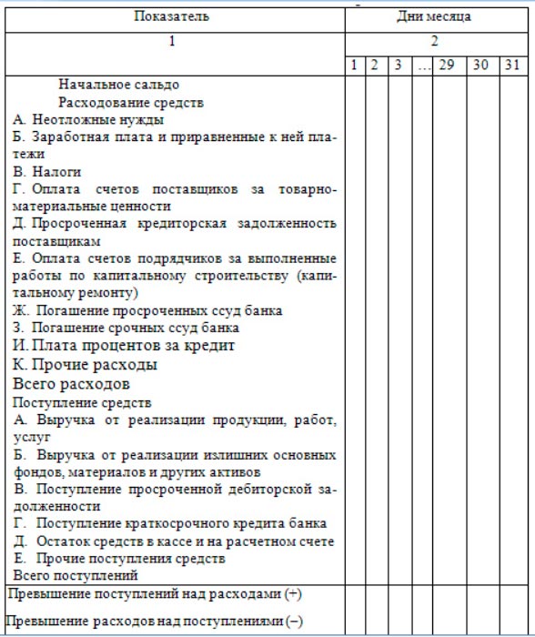 Форма кассового плана 114 фото