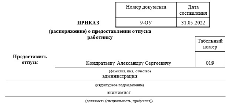 Форма no 6 к приказу