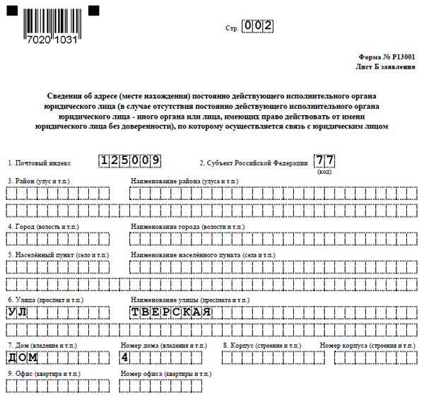 Форма р13014 при смене юр адреса