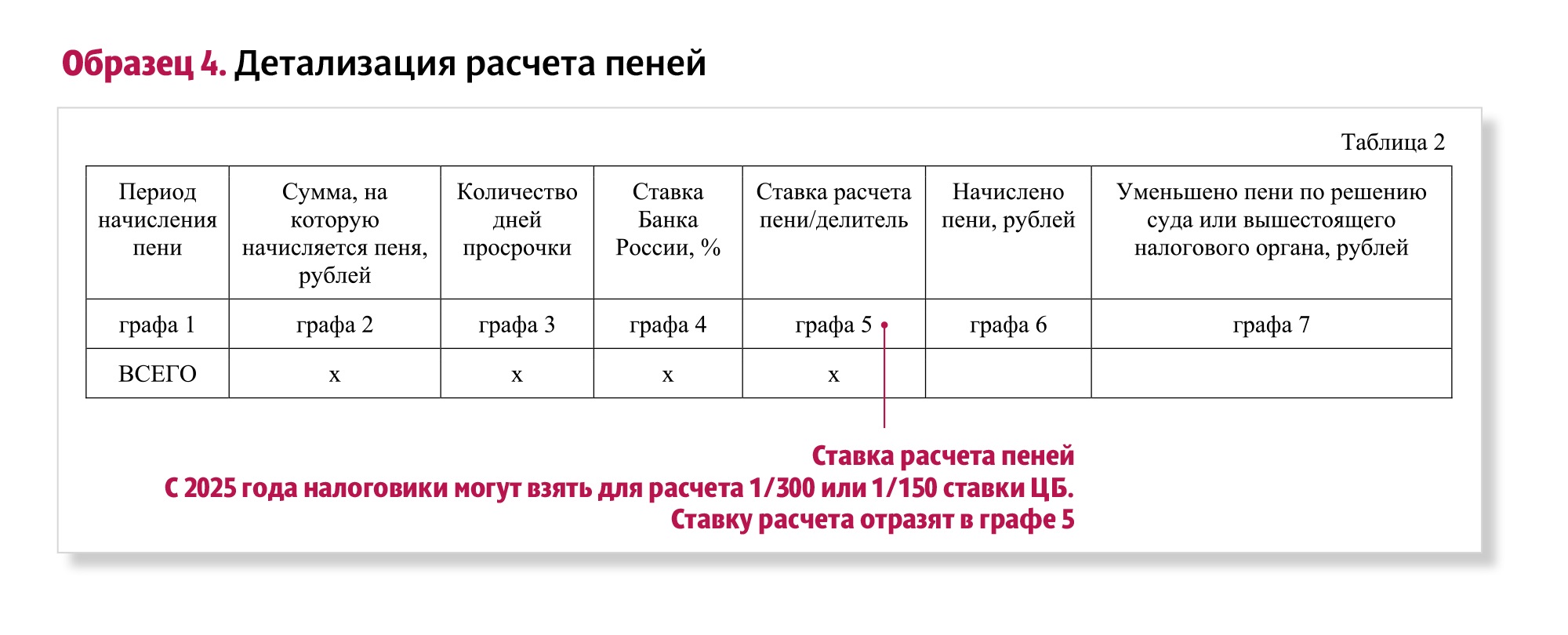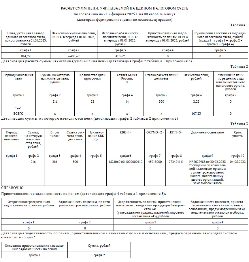 Форма расчета пени