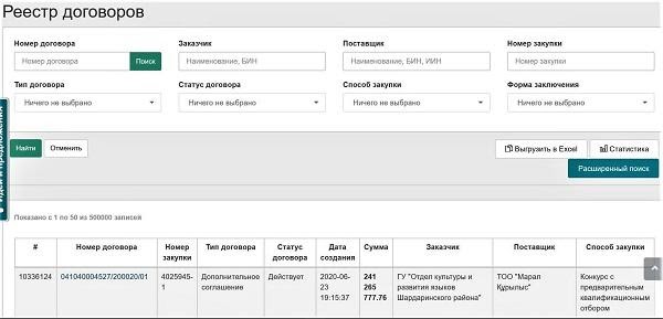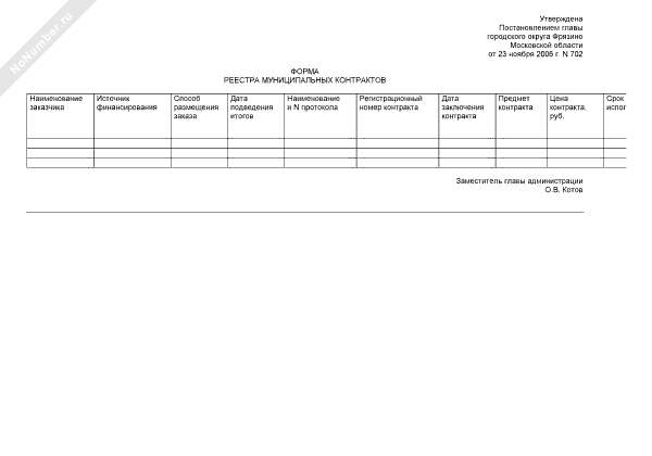 Форма реестра контракта