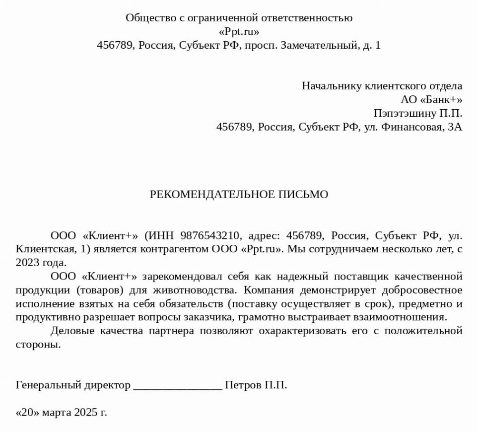 Форма рекомендательного письма