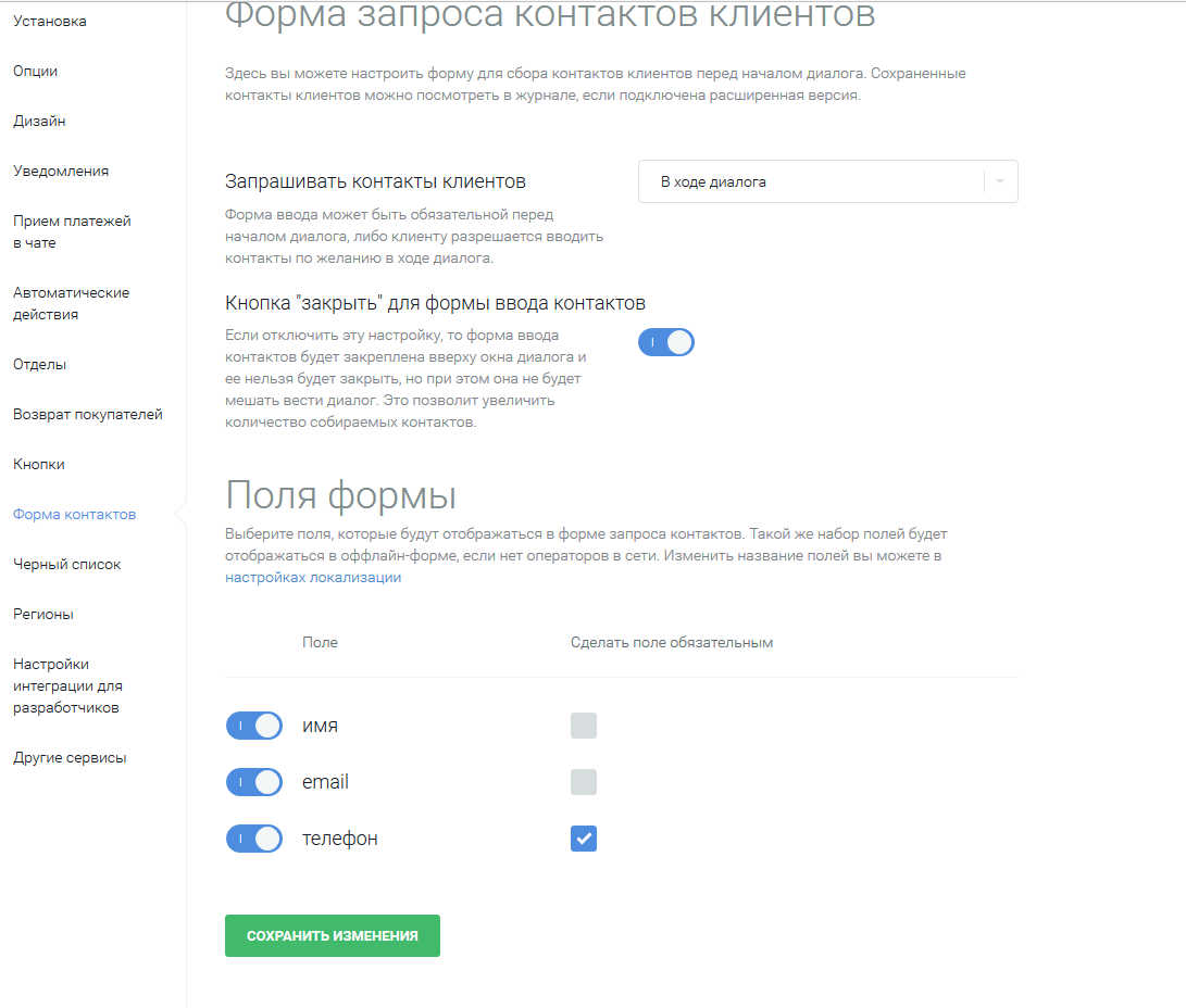 Форма сбора контактов