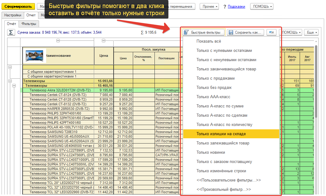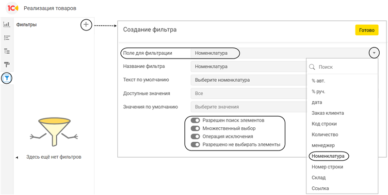 Форма списка фильтр