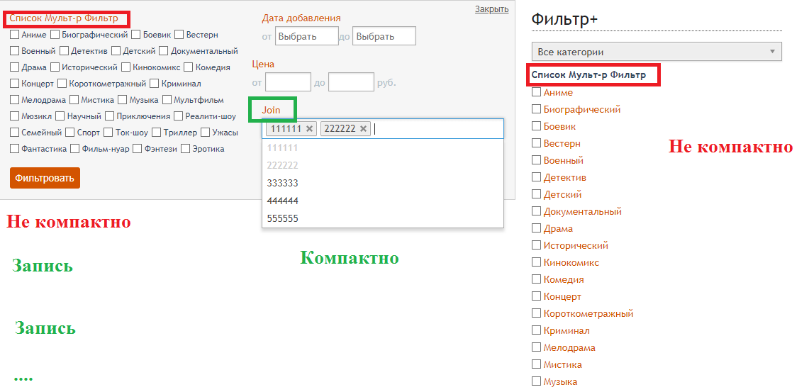 Форма списка фильтр 107 фотографий