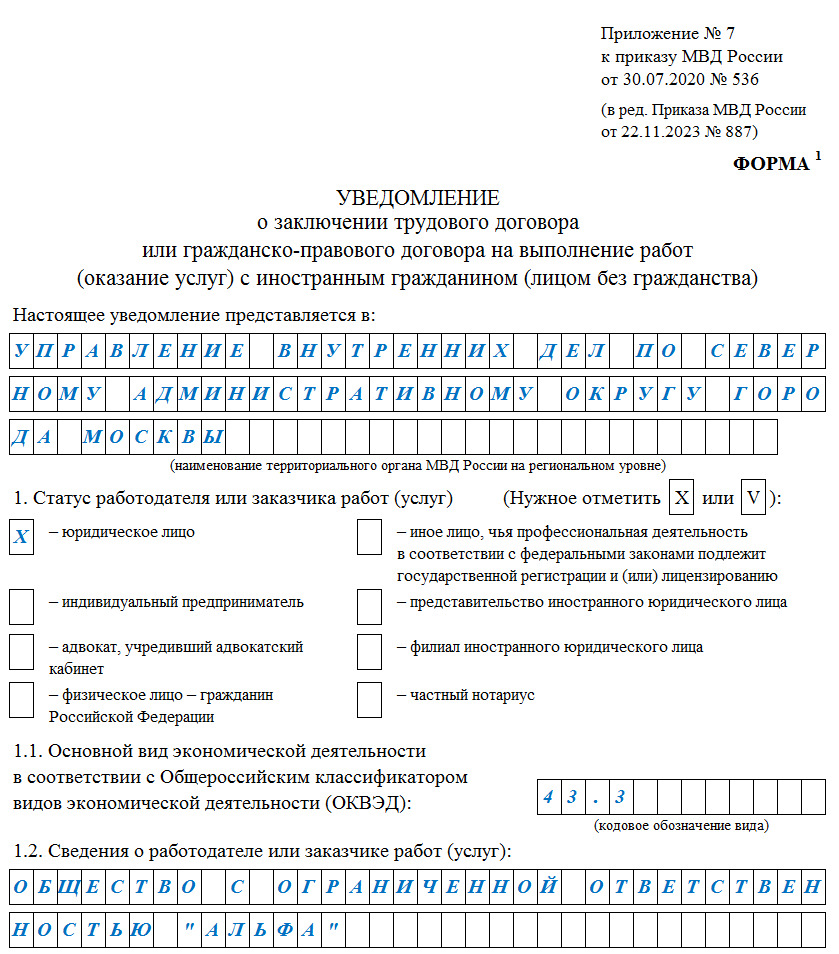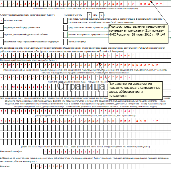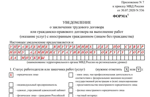 Форма уведомления о приеме иностранца 143 фото