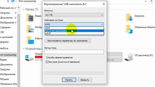 Форматирование флешки фат 32