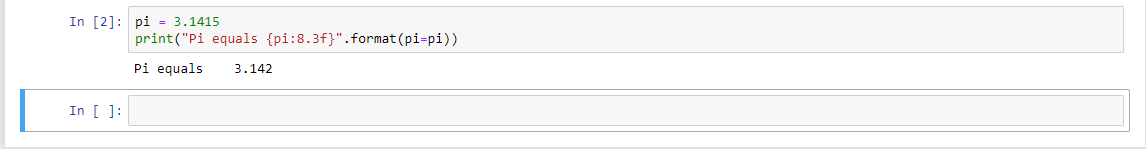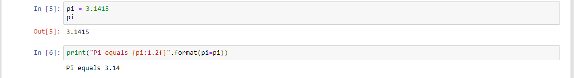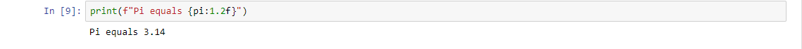 Одной из главных фич связанных с форматированием это особое форматирование определенных типов. Например, предположим, мы имеем переменную pi = 3.1415. И мы хотим вывести всего 2 числа после запятой. Вот простой пример, как можно это сделать: