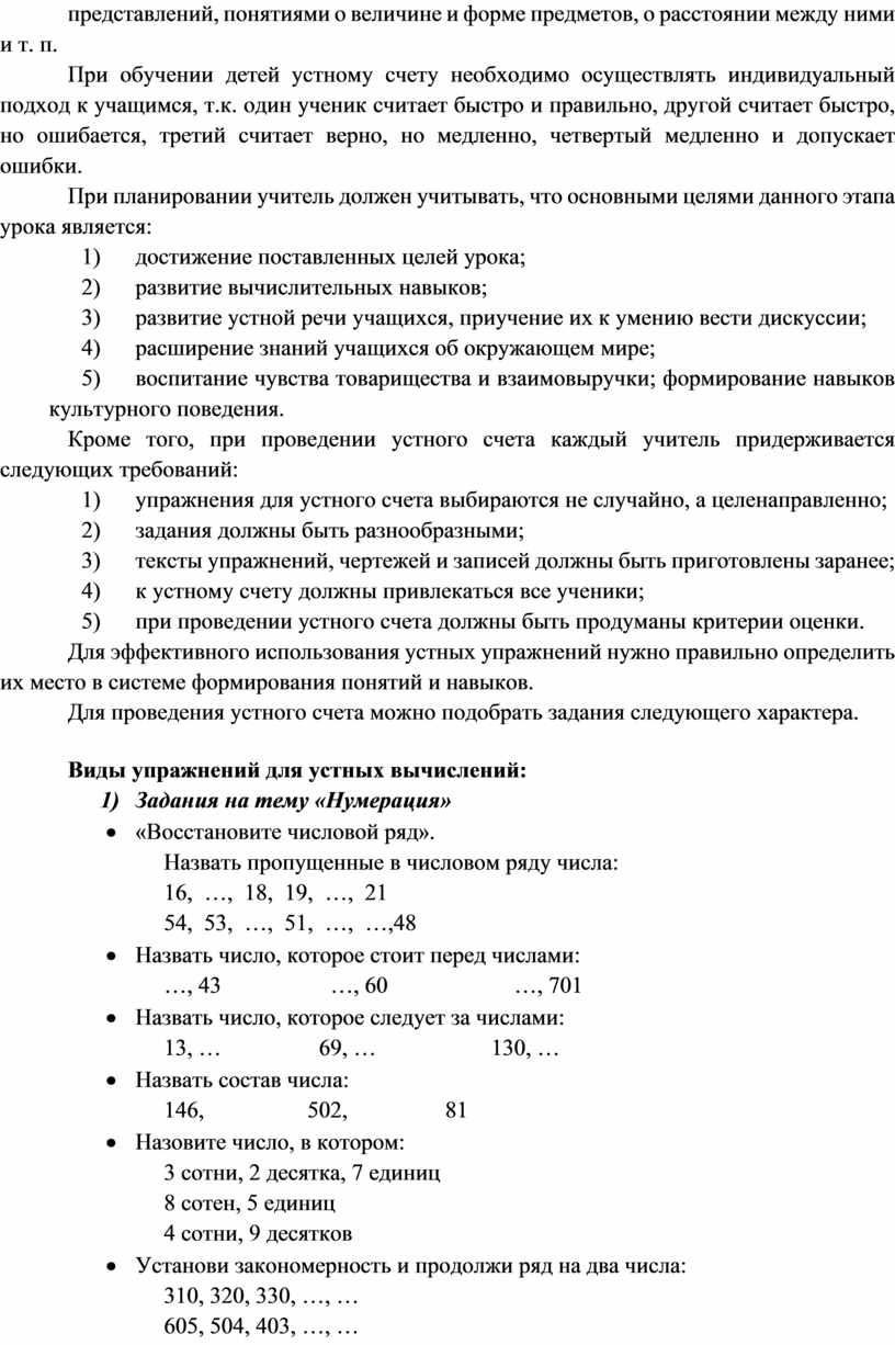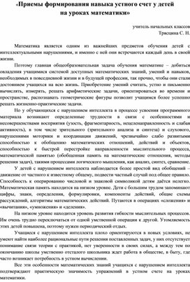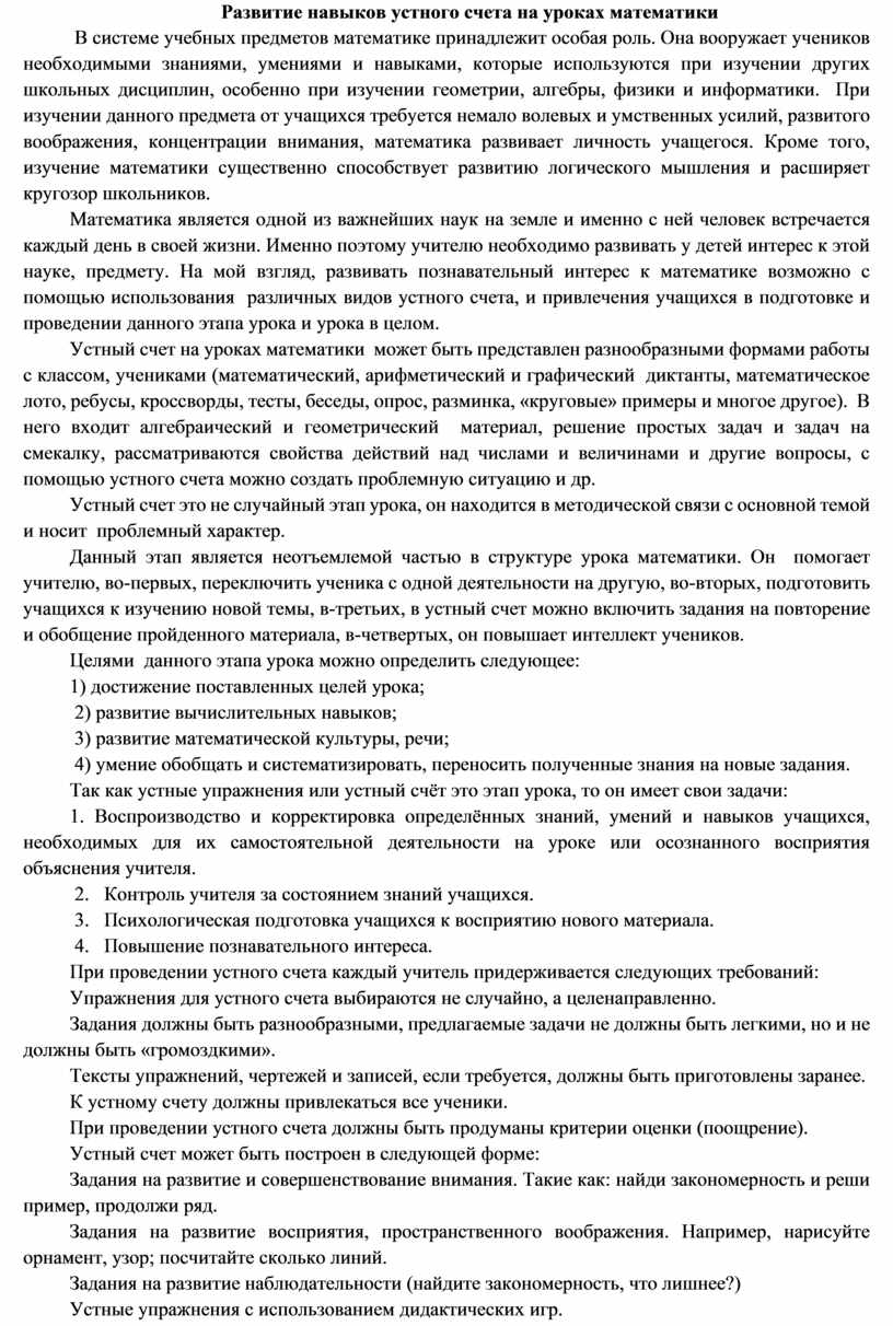 Формированию навыков устного счета