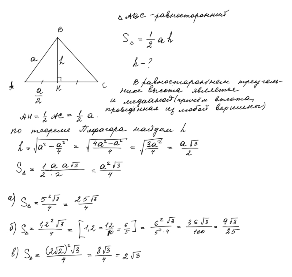 Формула площади равностороннего треугольника через его сторону 113 фотографий