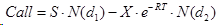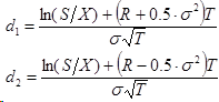 Где N(x) – интегральная функция нормального или Гауссового распределения с единичной дисперсией и нулевым средним, а ее аргументы определяются так:
