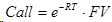Стоимость любого будущего актива определяется будущим денежным потоком FV (Future Value), который он принесет, дисконтированным на временную стоимость денег e^(-RT). Это общее правило инвестиций позволяет определить стоимость опциона CALL, как: