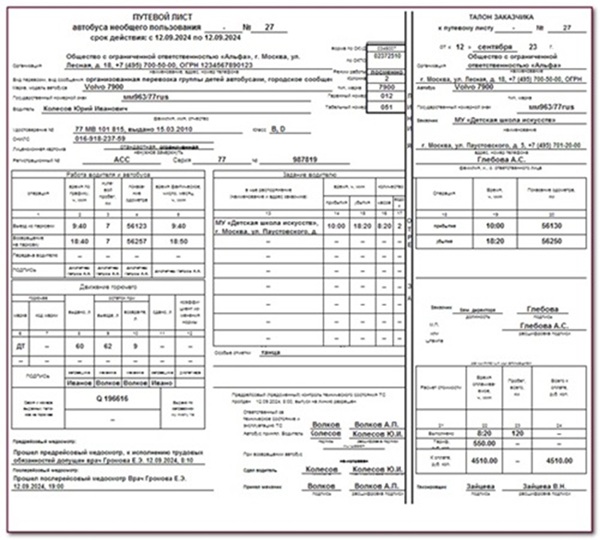 Формулы для путевого листа