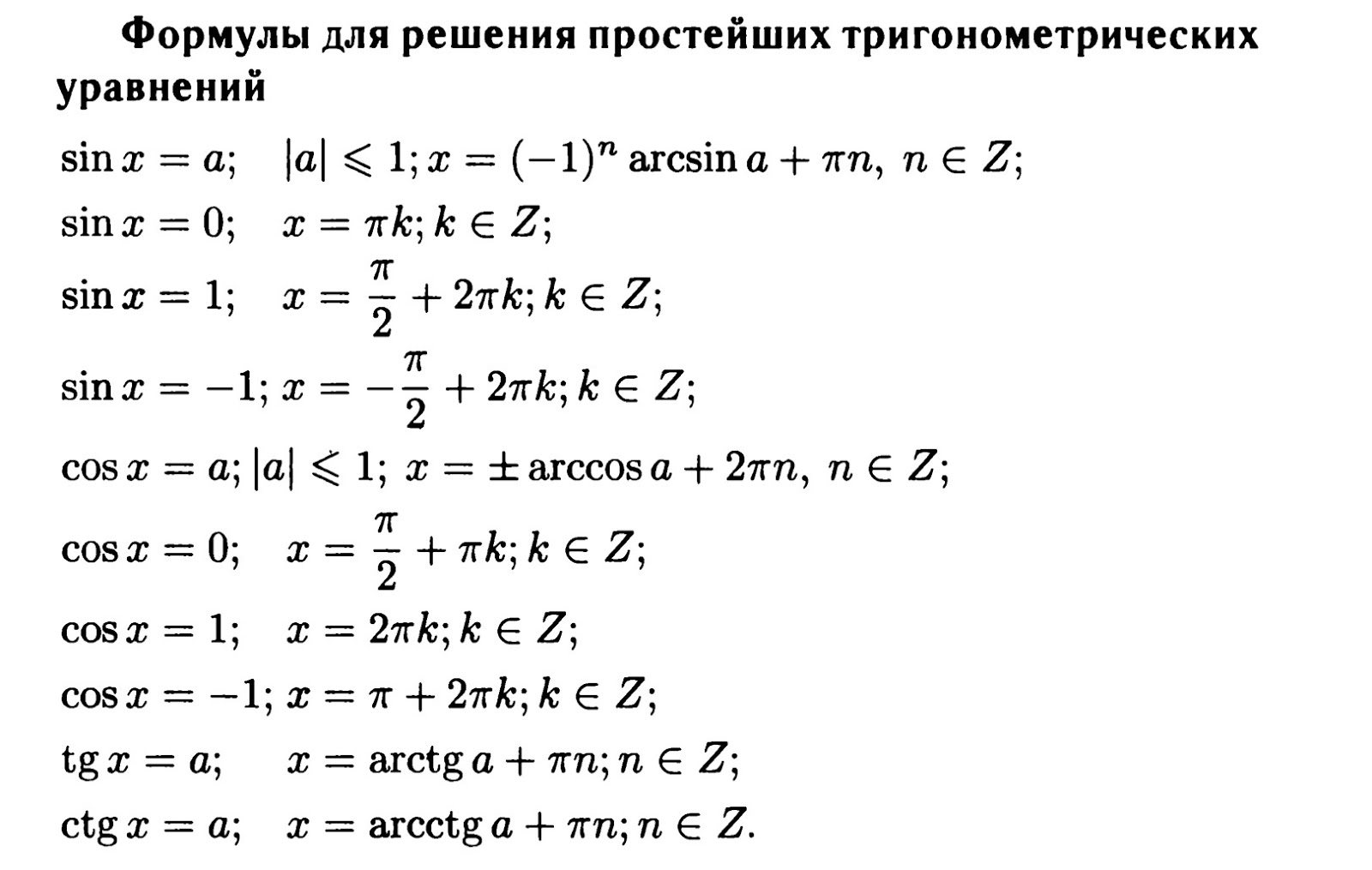 Формулы для решения уравнений