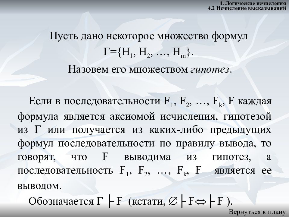 Формулы исчисление высказываний