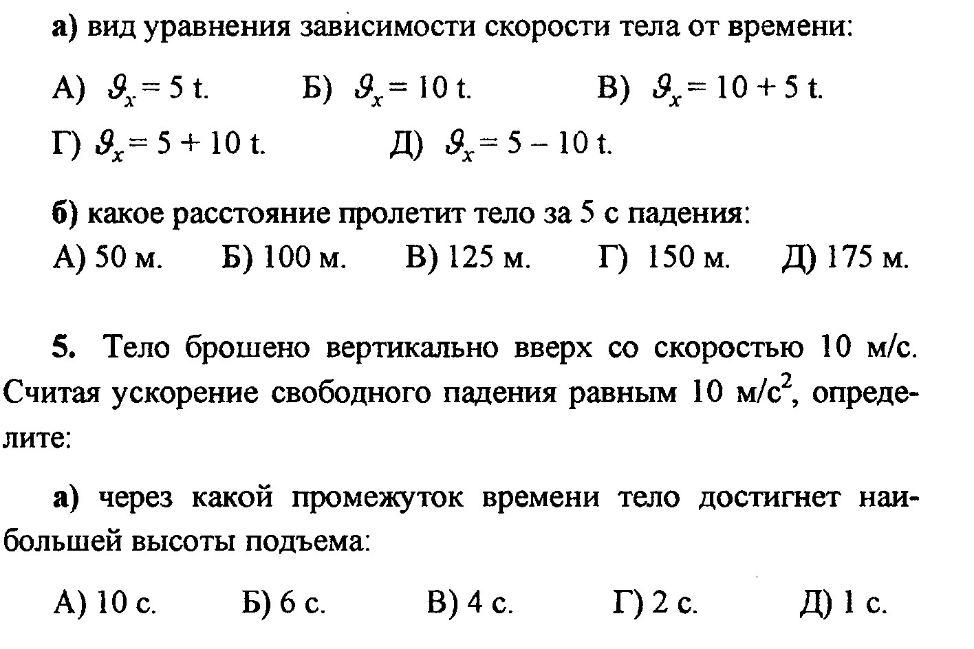 Формулы описывающие движение тела брошенного вертикально вверх