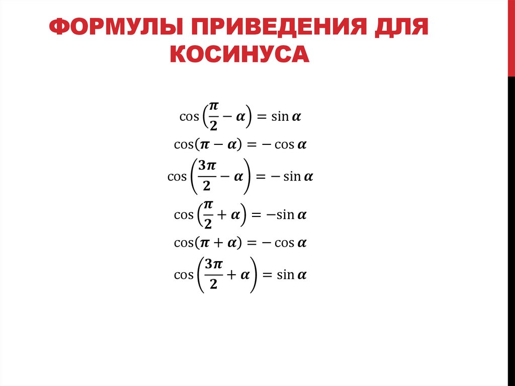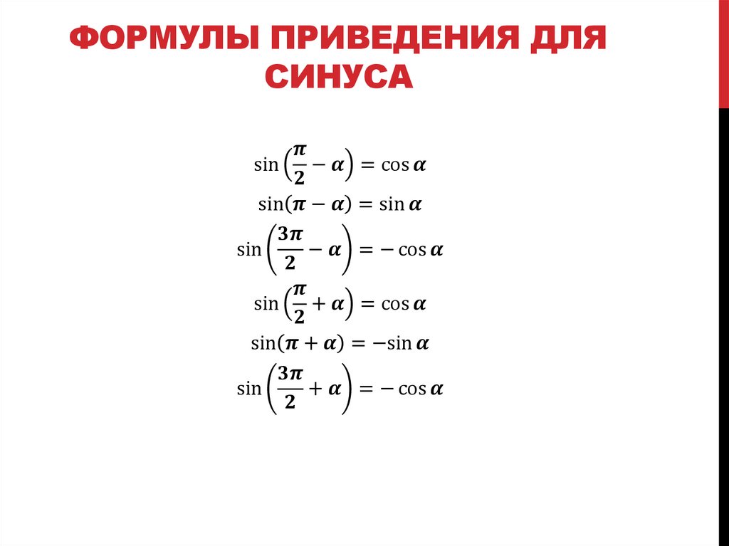 Формулы приведения 90 а