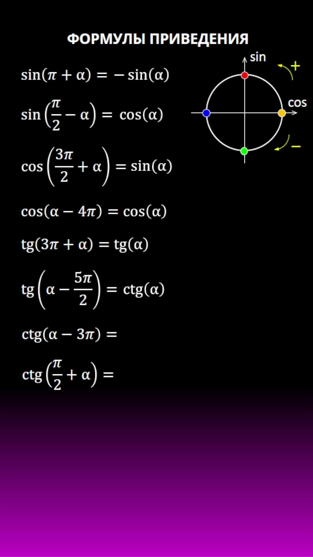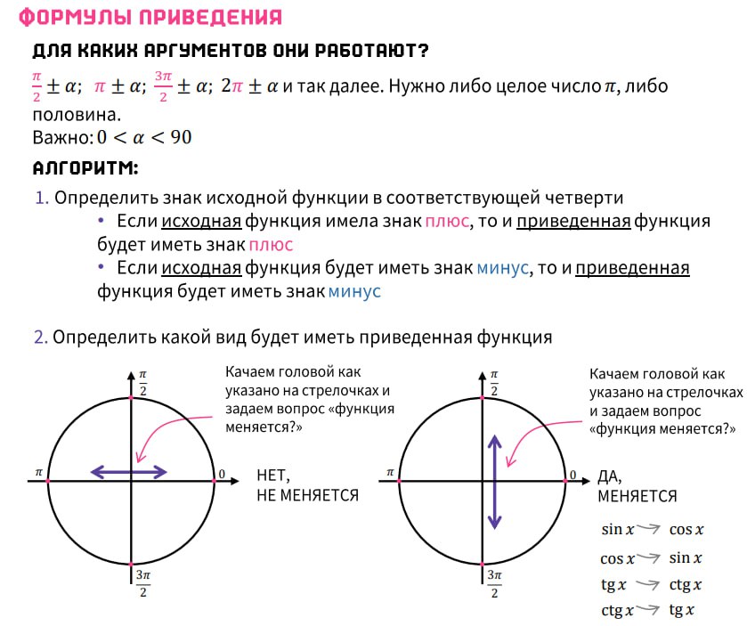 Формулы приведения 90 а 114 фотографий
