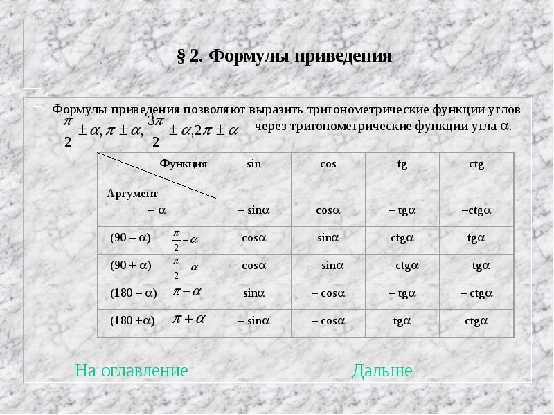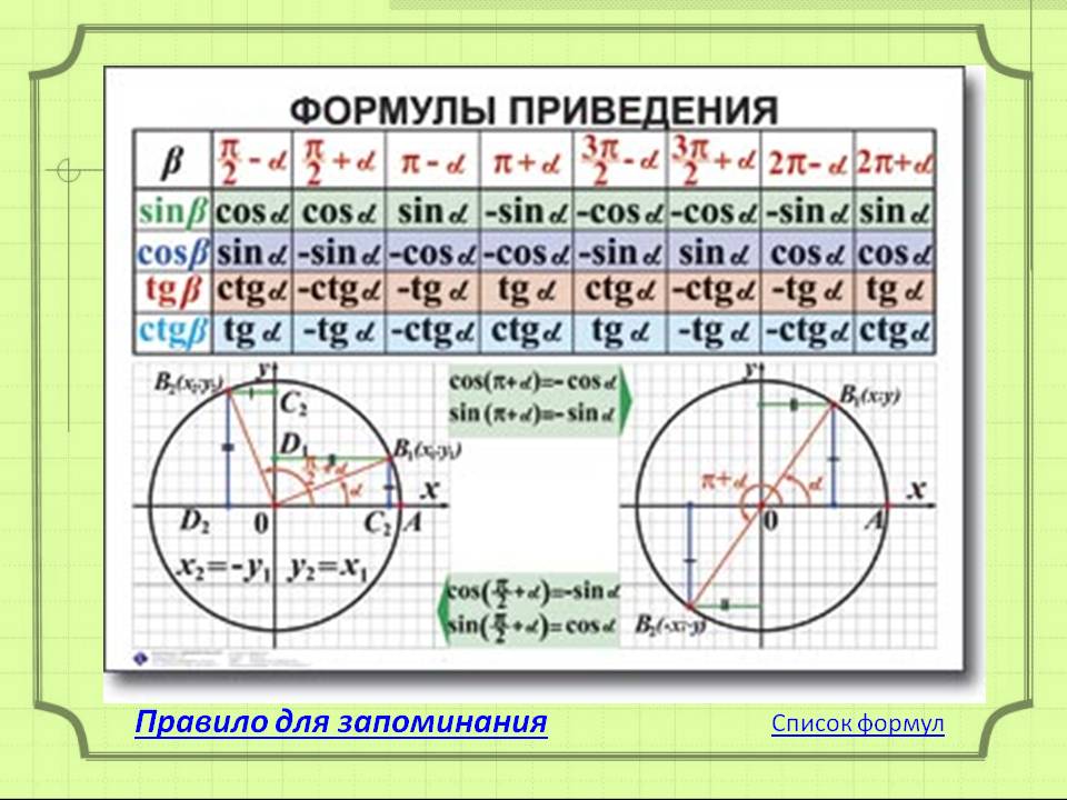 Формулы приведения для острых углов 8 класс 112 фотографий