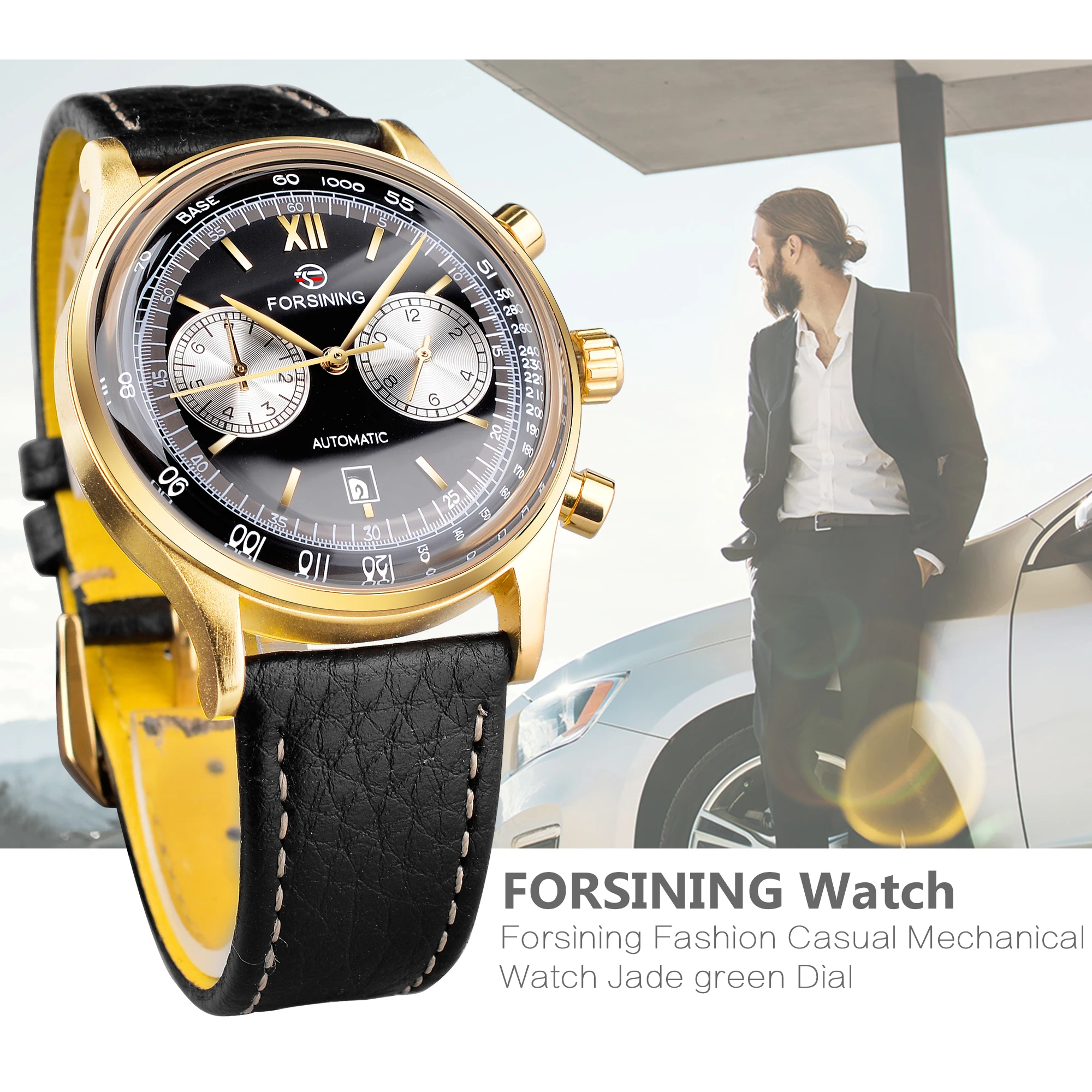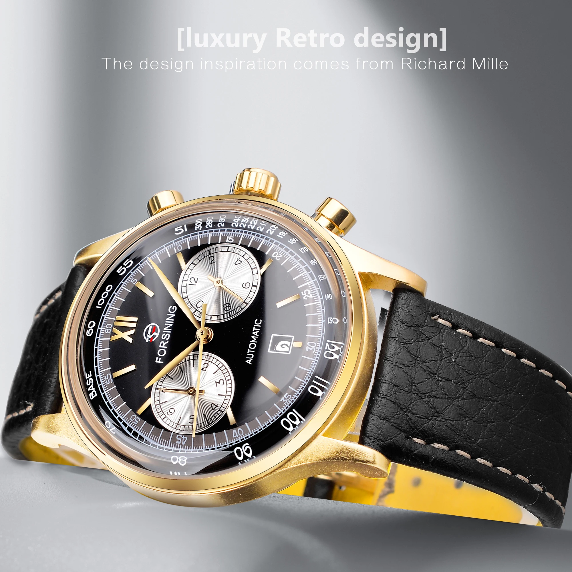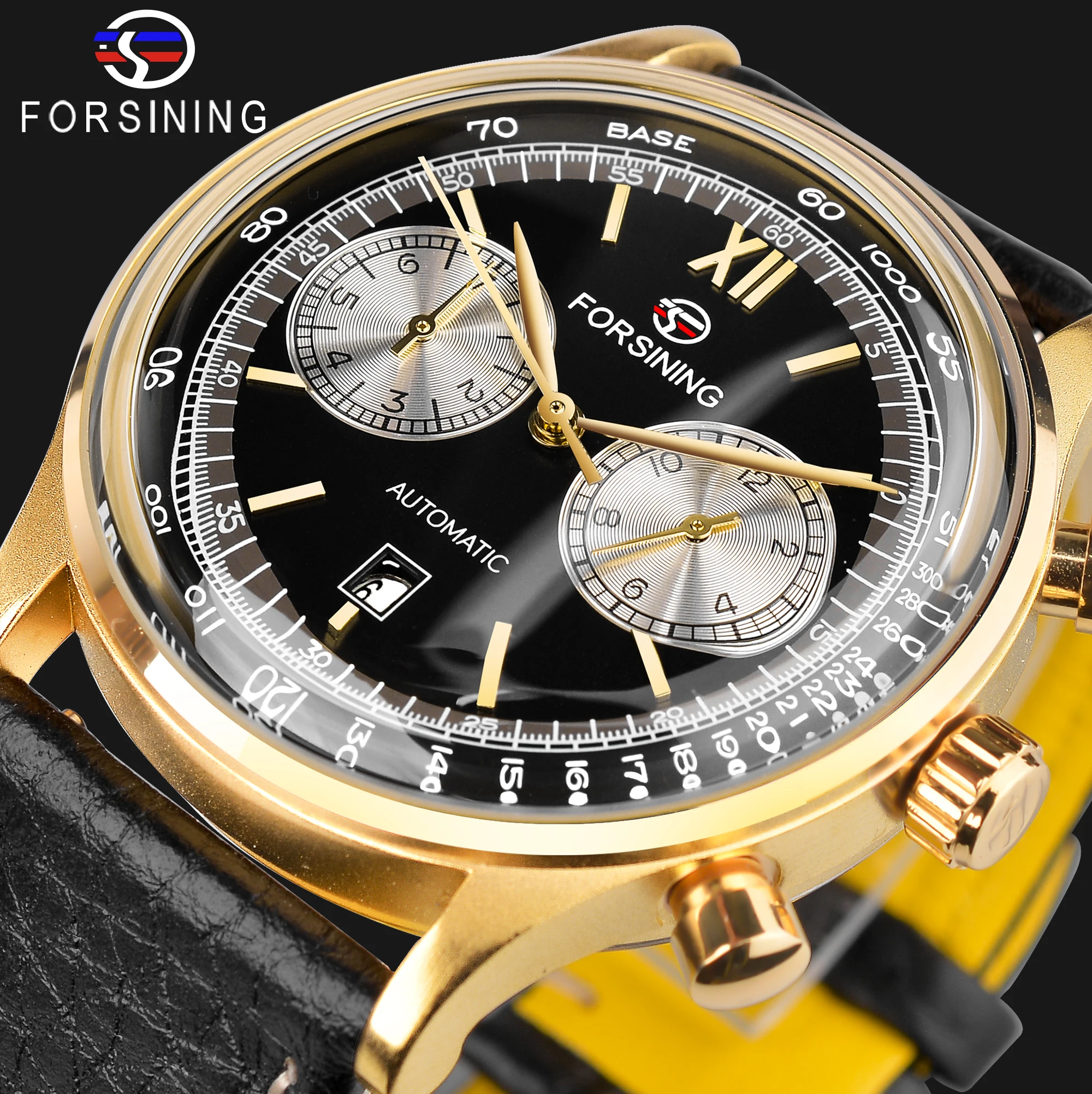 "Forsining 2022 Classic Golden Concave Glass Calendar Two Dial Display Fashion ShangHai Movement Mens Mechanical Automatic Watch" * Buy Now Just For 50$