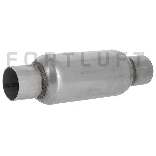 Pare-flammes FORTLUFT rond (plus résistant avec branchies à flux direct) Longueur totale : 300 mm ; Longueur du canon 200 mm ; Diamètre du canon : 76 mm ; Diamètre du tuyau : 55 mm. Convient à toutes les voitures. Sert de remplacement au catalyseur standard pour éviter l'épuisement du système d'échappement. Sélectionné en fonction de la taille du catalyseur standard
