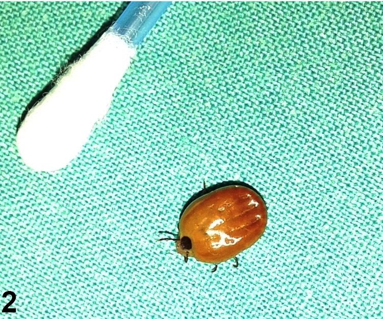 Figure 2. Коричневый собачий клещ после удаления с века.