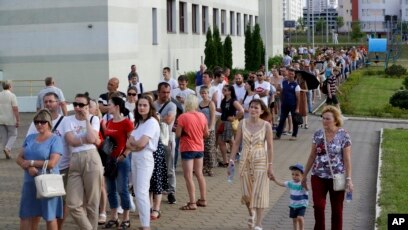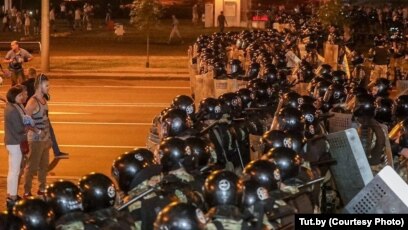 Минск, Беларусь . 9 августа 2020 г . Фото: Vot-tak .tv / Belsat .eu . Прошло трое суток, как в Беларуси идут протесты .Люди возмущены фальсификацией правительством результатов президентских выборов .