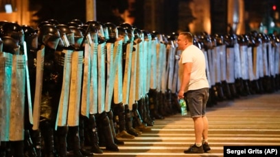 Столкновение протестующих с силовиками на улицах Минска 9 . . .