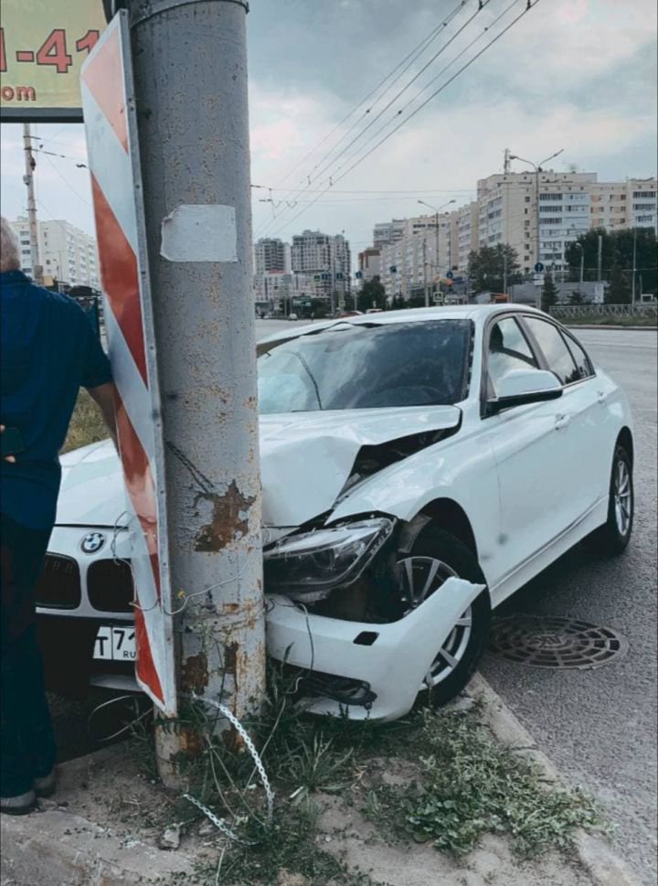 В Казани водитель BMW на скорости въехал в столб, фотографии с места аварии появились в социальных сетях . Фото: соцсети .