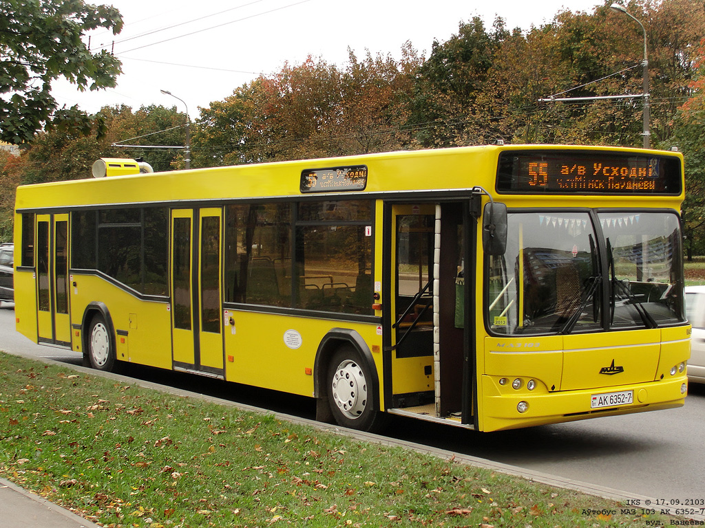 МАЗ- 103 — белорусский полунизкопольный (ступенька у задней двери) городской автобус большой вместимости, выпускавшийся Минским автомобильным заводом с 1996 года .
