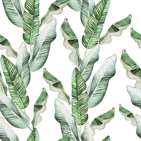 Листья банана - фото и фотографии . . . Набор пальмовых или банановых листьев изолированы на белом фоне . Ручная рисованная акварель .