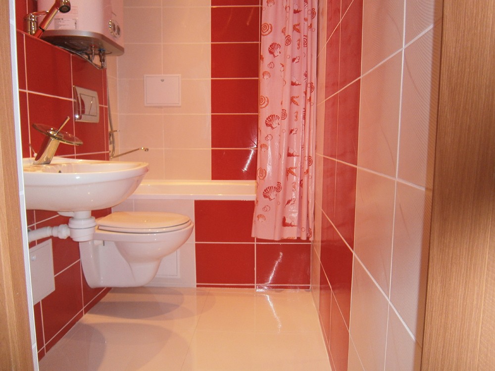 Красно белая ванная комната (61 фото)