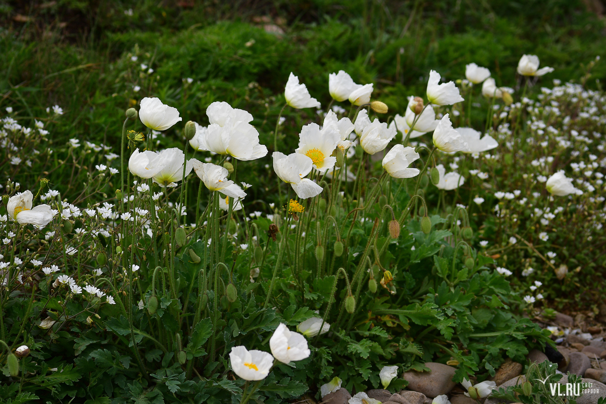Белые маки украсили пляж Ахлёстышева и Ботанический сад (ФОТО)