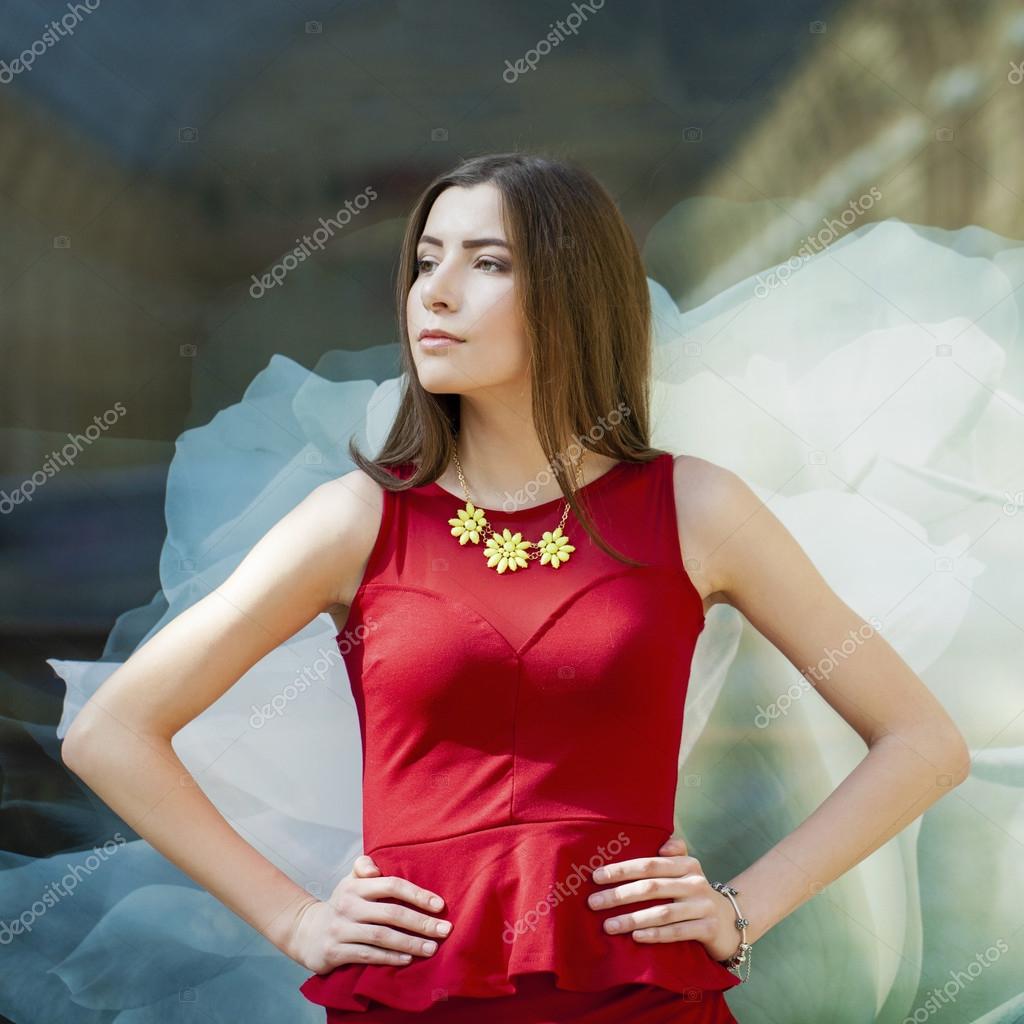 Брюнетка в красном платье: стоковые фото, изображения . . .