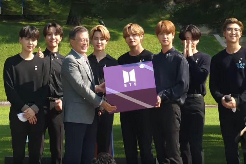 14 сентября в Голубом доме президент Южной Кореи Мун Джэ Ин официально назначил BTS специальными посланниками президента . В официальных черных костюмах BTS появились в Голубом доме и встретились с президентом впервые в этом году .