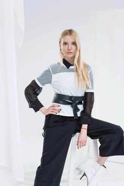 1-100 из 494,199 . Обрезанный образ стильной блондинки в черной одежде, стоящей со скрещенными руками . Бумажные пакеты, одежда и этикетки . Красивая кавказская блондинка в модной черной одежде . . .