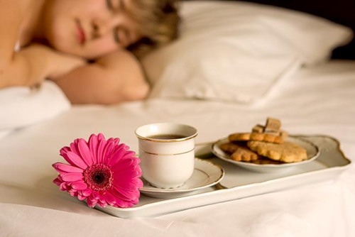 Парень утром принёс девушке кофе в постель