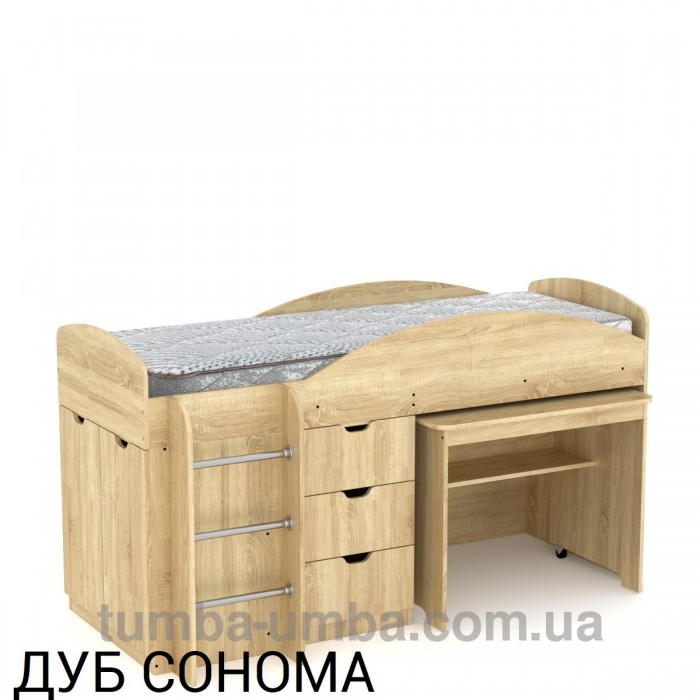 Детская кровать со столом: ящиками, шкафом и другими . . .
