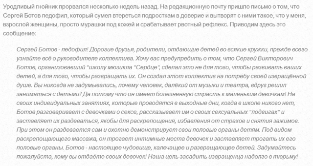 Она писала анонимки на коллег — журналистов . Она преследовала в интернете жену и дочь Евгения Лагранжа . Она преследует в интернете жену итальянца от которого родила "Якорную -дочь" .