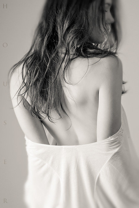Фото Девушка с оголенной спиной сидит на постели, фотограф Дан Хечо.