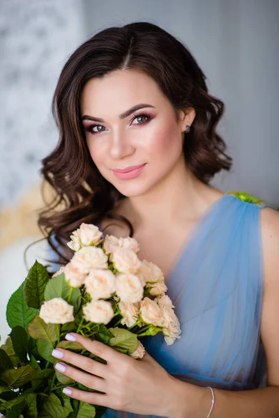 Девушка с букетом цветов в руках - красивые фото и картинки