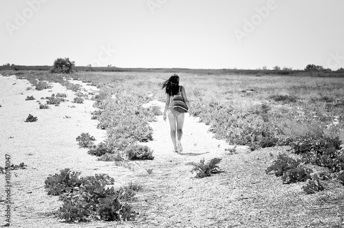 Скачайте стоковую фотографию Милая девушка уходит босиком по проселочной дороге через поле летом - 198898320 из многомилионной коллекции лицензионных фотографий, иллюстраций и векторных изображений Depositphotos .